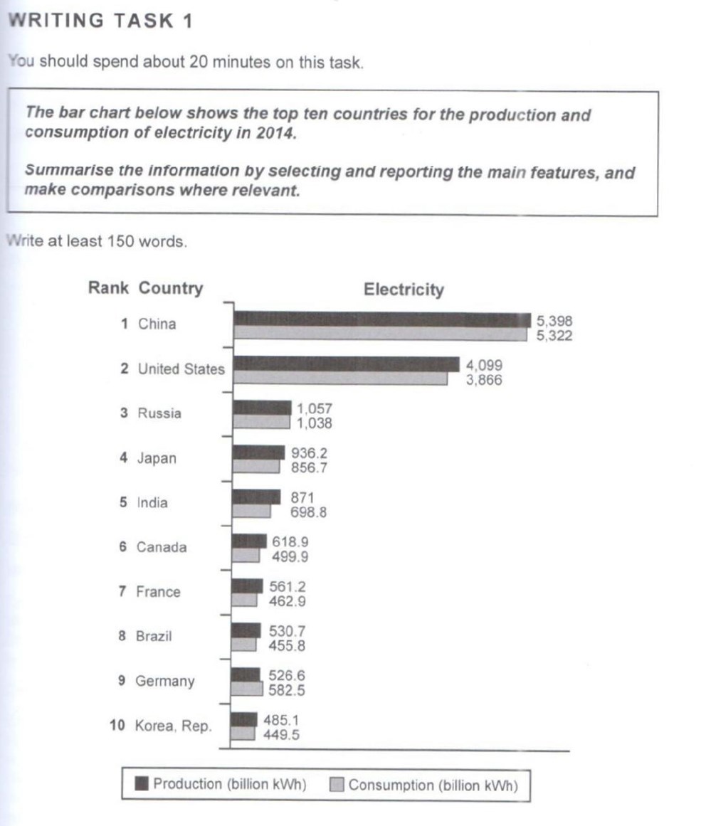 The chart illustrates how much electricity the top ten nations produced and consumed in 2014.